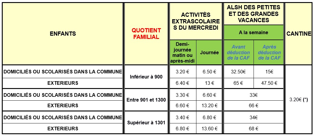 (*) le dispositif gouvernemental de la cantine à 1€ ne peut pas être appliqué hors période scolaire