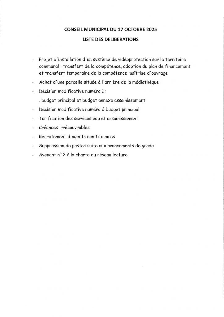 Liste des délibérations du 17/10/2025